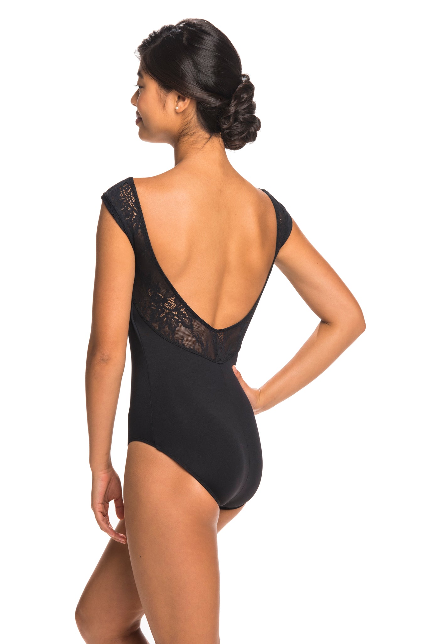 • The Elodie leotard is a perfect for class with the elegant front, Kara Lace trim and low back.