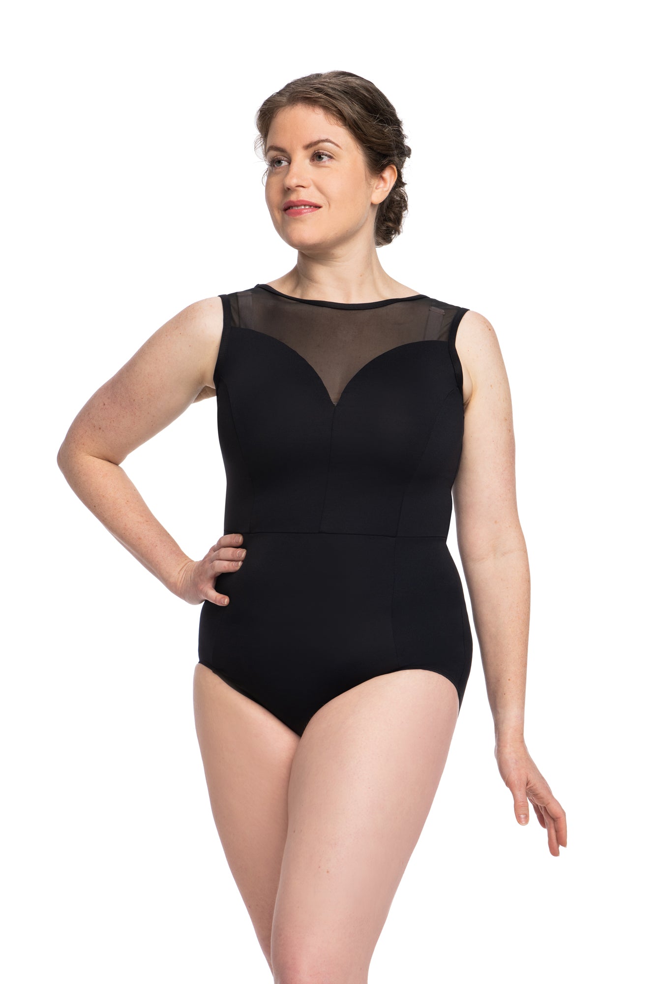 - Our Bianca leotard is timeless in design with a flattering sweetheart neckline in mesh, front panel seams and low back.