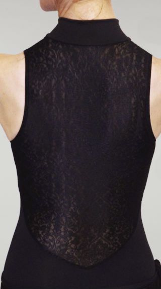 • The Royal Lace panel on the back our Zip Front leotard is slightly sheer and yet opaque enough to wear a bra underneath - its truly the best of both worlds - classy and comfy.