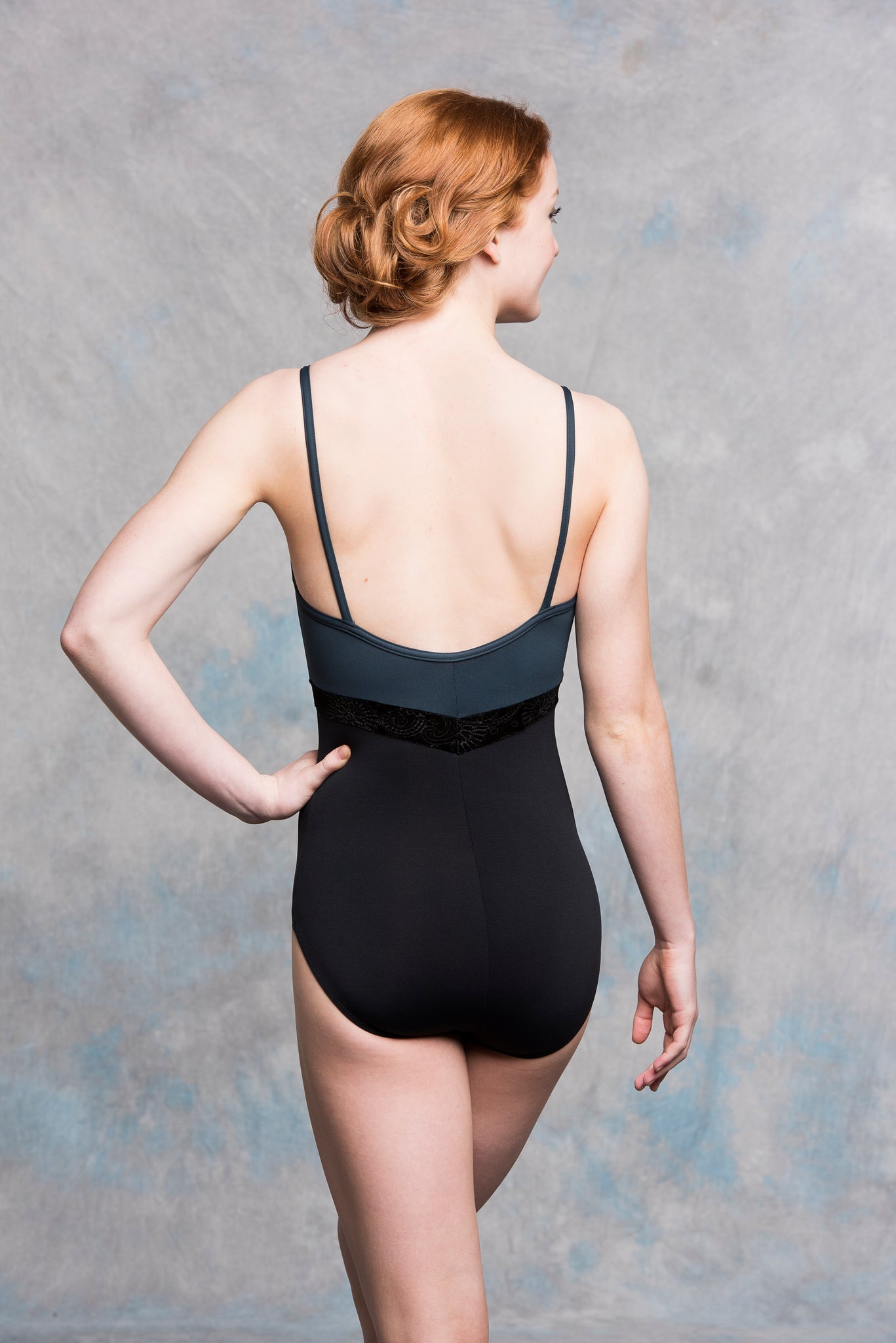 - Our traditional Spaghetti Strap leotard is classic in two-tone colours trimmed with Paisley Velvet along the bodice line.