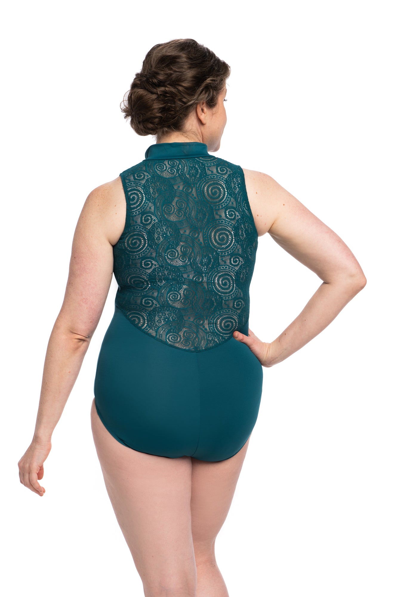 - With a high neck and back adorned with lace your dancing will never look better.