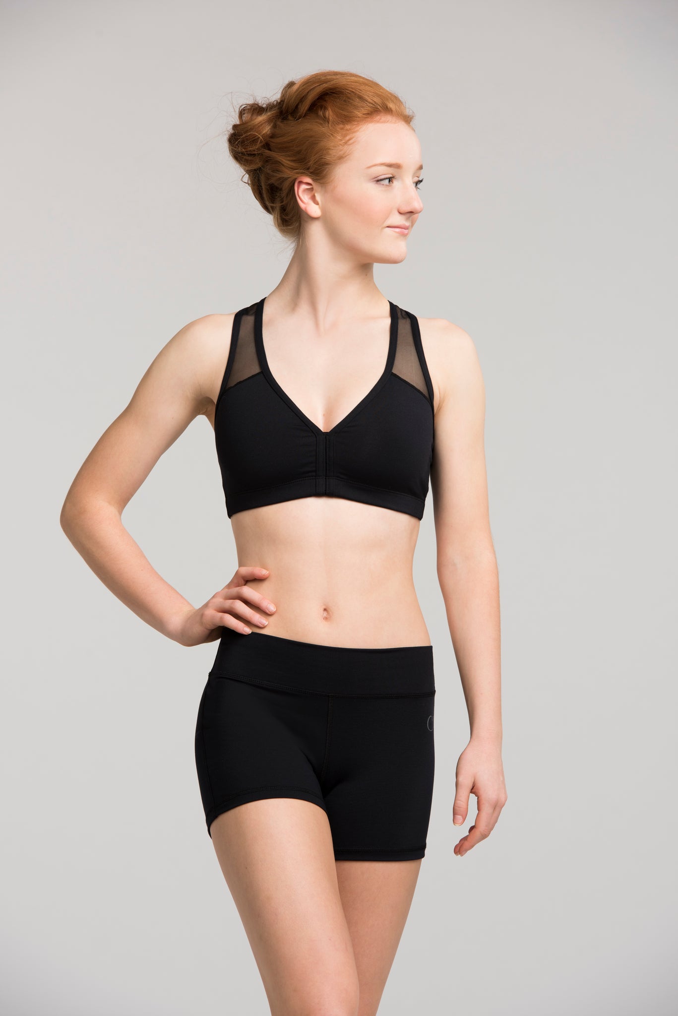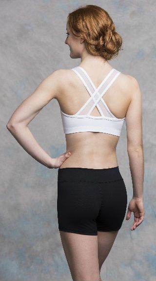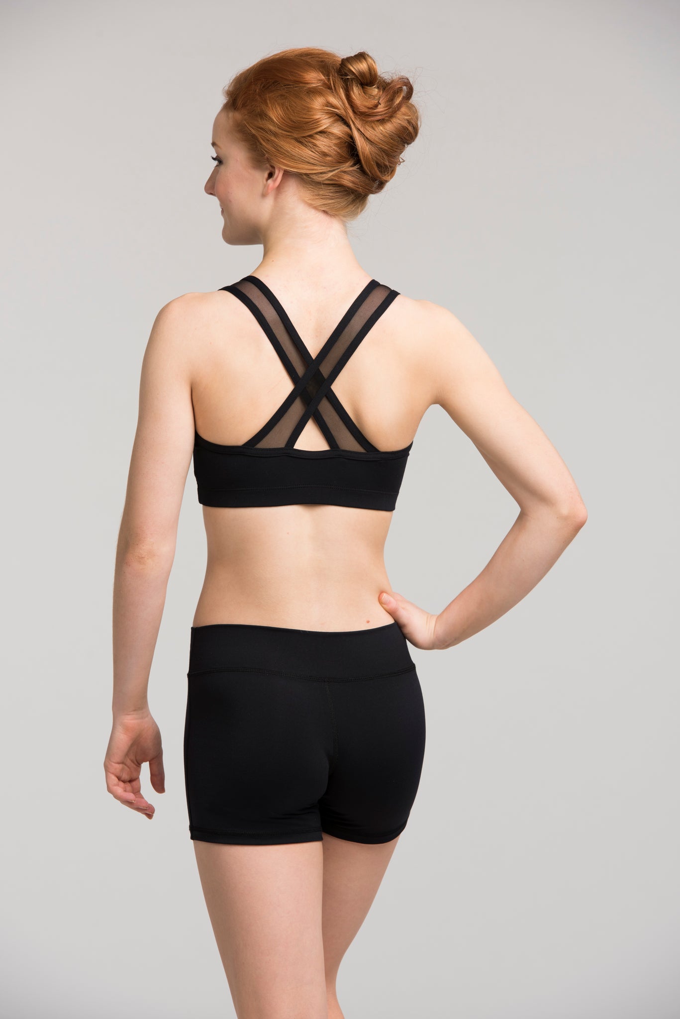 - It's a sexy bra top with mesh straps that cross int he back, yet it still feels secure because of the coverage and fit.