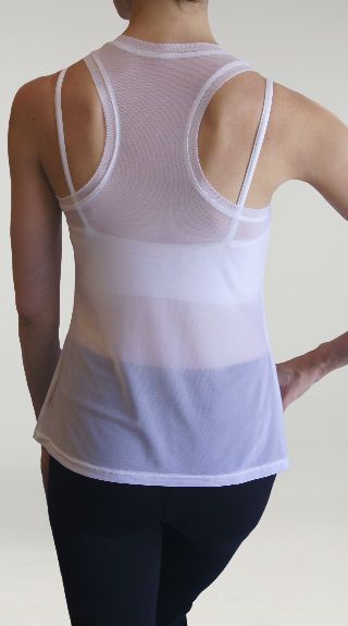 - This racerback mesh top has a soft mesh trim and has a loose comfy fit.
